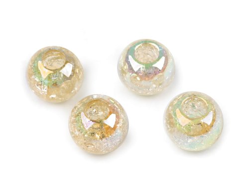 Velké plastové korálky nadchnou děti i dospělé. Jsou doslova magické, protože mají vysoký lesk s AB efektem, navíc uvnitř mají působivé kraklé - praskliny, které se lidově nazývají práskačky. Korálky jsou velice kvalitní, všude hladké, nemají žádné otřepení nebo viditelné švy. Našim fotografům se fotografie velmi povedly, ale věřte, že ve skutečnosti jsou korálky ještě zajímavější. Můžete je navlékat na silon, díky většímu průvleku i na šňůrky nebo jiný návlekový materiál. Korálky můžete použít na výrobu náhrdelníků, přívěsků ke klíčům, hodí se i na výrobu lapačů snů, k ozdobení tašek apod.