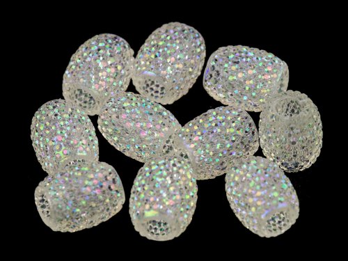 Transparentní korálky s velkým průvlekem ve tvaru olivy mají díky drobným ploškám výrazný lesk. Navíc mají povrch s AB efektem, jenž způsobuje vysoký duhový třpyt korálku. Jejich velikou výhodou je lehkost použitého materiálu. Náš Tip: zkuste je navléci na modistickou dutinku. Vytvoříte si šperk podle vlastního gusta. Korálky využijete nejen k výrobě bižuterie, ale i ke zdobení oděvů, tašek nebo plavek. [Jsou oblíbené i na techniku macrame nebo na výrobu lapačů snů.] [Korálky jsou vhodné pouze pro šetrné ruční praní.]