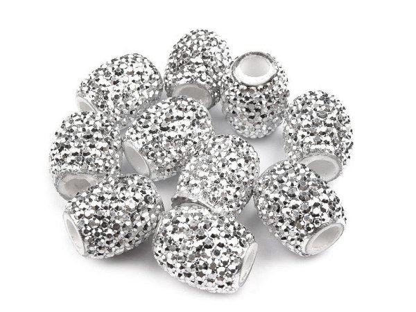 Plastové korálky s velkým průvlekem 13x15 mm - (058) stříbrná (5 ks)