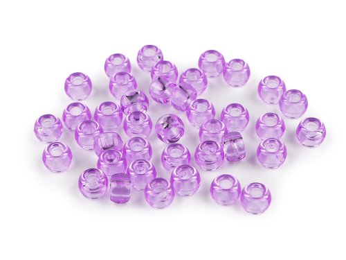 Transparentní plastové korálky s velkým průvlekem využijete do krátkých i dlouhých náhrdelníků nebo náramků. Nejsou kulaté, mají tvar nízkého okrouhlého válečku. Jejich velikou výhodou je lehký materiál a větší průvlek. Jako návlekový materiál jsou vhodné šperkové šňůrky. Korálky můžete navlékat na větší množství tenkých šňůrek, které se mezi sebou různě uzlují a svazují a tvoří tak zajímavý celek. Korálky využijete nejen k výrobě bižuterie, ale i ke zdobení oděvů, tašek nebo plavek. Korálky jsou vhodné pouze pro šetrné ruční praní. Balení 20 g obsahuje cca 74 ks korálků.