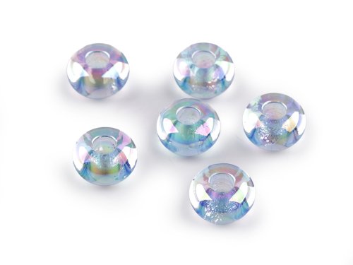 Plastové korálky s velkým průvlekem Ø13 mm s AB efektem - modrá světlá (6 ks)
