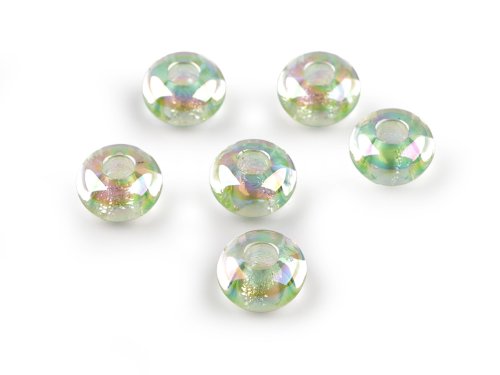 Plastové korálky s velkým průvlekem Ø13 mm s AB efektem - zelená sv. (6 ks)