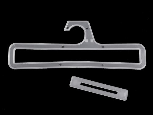 Plastové ramínko je vhodné pro prodejny na vystavení zboží (šátků, metráže látek, vzorkovníků apod.). V případě potřeby [(u zboží se závěsem či s nějakým otvorem)] můžete do horní části vložit přiloženou zarážku a zboží zajistit. Ramínko není otočné.