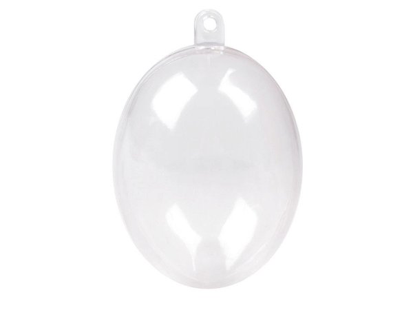 Průhledné plastové vejce se skládá ze dvou částí, které lze spojit a pomocí očka zavěsit jako dekoraci. Jedná se o polotovar, který je určen k dozdobení, např. jej můžete obháčkovat, dekorovat metodou quilling, ubrouskovou technikou, dozdobit glitry atd. Rozměr vejce je 45 x 60 mm. Průměr průvleku na zavěšení je 2,5 mm. Jelikož se jedná o plast a dodavatel nebalí části odděleně, mohou se na povrchu vyskytovat drobné škrábance.