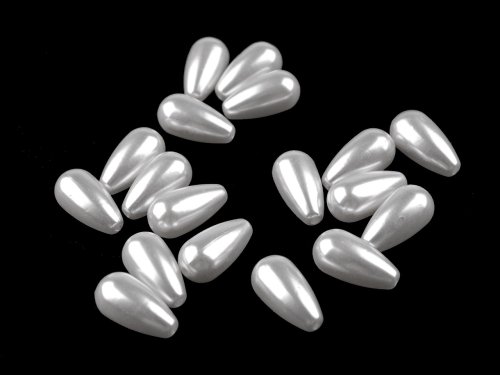 Plastové korálky ve tvaru větší kapky mají perlový lesk, na jaký jste zvyklí u skleněných voskovaných perlí. Našimi zákazníky jsou obzvlášť žádané, protože mají malou hmotnost a šperkům dodají slavnostní vzhled. Hodí se na dlouhé návleky náhrdelníků, na náramky i na jednoduché náušnice. Náš tip: korálky můžete využít na malé korálkové andělíčky. Balení 20 g obsahuje cca 18 ks korálků.