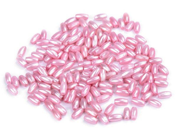 Velmi užívaná velikost lesklých korálků s efektem voskovaných perlí. Oválky jsou plastové, tudíž velmi lehké. Používají se jak na šité šperky, tak pro odlehčení při výrobě náhrdelníku v kombinaci s většími a těžšími korálky. Průvlek 1 mm. [V balení 5g je cca 146ks korálků.]