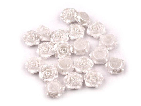 Plastové voskové korálky / perly růžičky s průvlekem Ø13 mm - bílá (20 ks)