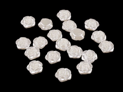 Plastové voskové korálky / perly růžičky s průvlekem Ø13 mm - perlová (20 ks)