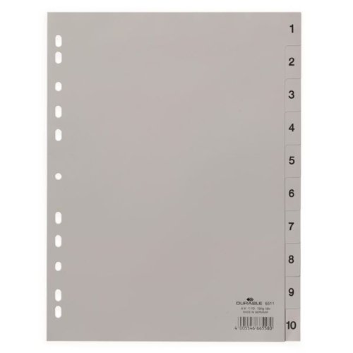 Plastový rozlišovač Durable - A4, šedý, 1-10