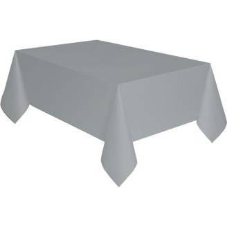 Plastový ubrus stříbrný. Rozměry 137 x 274 cm.