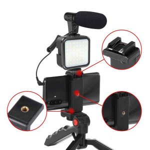 Sada pro vlogování je navržena tak, aby obohatila vaše videa o lepší zvuk a osvětlení uvnitř i venku. Je vybaven univerzálním mikrofonem pro práci s jakýmkoli chytrým telefonem nebo fotoaparátem, LED lampou s 36 super jasnými LED diodami, rukojetí pro přenášení, kterou lze použít jako stativ, a vestavěným držákem, který vám umožní připevnit nejen telefon, ale také lampu a mikrofon.
