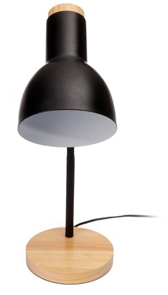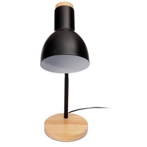 Elegantní stolní lampa s kovovým tělem a dřevěnou základnou, flexibilní hlavou a možností použití žárovky dle vlastního výběru.