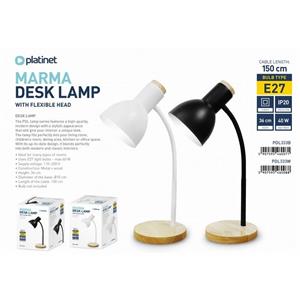 Elegantní stolní lampa s kovovým tělem a dřevěnou základnou, flexibilní hlavou a možností použití žárovky dle vlastního výběru.