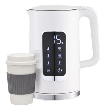 "Rychlovarná konvice vyrobená z vysoce kvalitních materiálů zajišťuje odolnost a snadné čištění. Zapomeňte na náhodné ohřívání rukojeti levných a nekvalitních konvic – naše konvice má pouzdro, které se nezahřívá, což zvyšuje bezpečnost používání. Díky přehlednému digitálnímu displeji a pěti úrovním teploty, můžete přesně přizpůsobit teplotu vybranému nápoji. Funkce udržování teploty vám umožní vychutnat si horký nápoj i po dlouhé době.