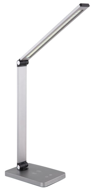 PARAMETRY: • LED: ano • Stmívatelné: ano • Bezdrátové nabíjení: ano • Dotykové: ano • Na baterie: ne • S USB: ano • Adaptér součástí balení: ano • Napájecí kabel součástí balení: ano • Typ konektoru na lampě: USB-C • Typ konektoru na adaptéru: napevno • Napětí napájení: 12V/2A • S nastavitelnou teplotou barvy světla: ano • Barevná teplota: 3000-6000 K • RGB: ne • Patice: Integrovaný LED zdroj • Vypínač: Na lampě • Index podání barev (CRI): 80 Ra • Počet cyklů zapnutí / vypnutí: 15 000 ON/OFF • Délka kabelu: 150 cm • Materiál: plast a kov • Barva: stříbrná • Světelný tok: 500 lm • Výkon: 10 W • Napětí: 5 V • Ekvivalent klasické žárovky: 35 W • Rozměry (Š x V x H): 110mm x 360mm x 330mm • Hmotnost: 0.75 kg