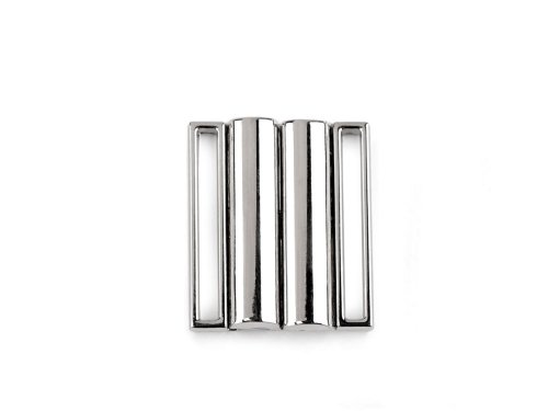 Kovové zapínání se skládá ze dvou dílů a zapnete ho vsunutím jednoho dílu mezi druhý. Využijete ho na plavky, ale také na výrobu opasků. Povrch je odolný vůči korozi. Rozměry jednoho dílu spony jsou 21 x 33 mm.