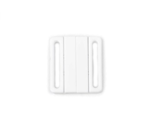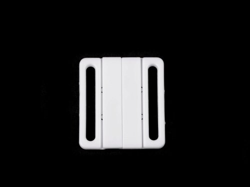 Plastové zapínání využijete na plavky nebo lehké textilní opasky. Zapíná se vsunutím jednoho dílu mezi druhý díl a zacvaknutím. Rozměry jednoho dílu spony jsou 23 x 40 mm.