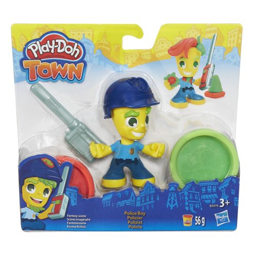 Udělejte si pár kamarádů ve městě Play-Doh! Policista přichází na scénu, kdykoliv je potřeba pomoci s vyšetřováním. Jeho nohama můžete vyrazit knírek a odznak a jeho bradku můžete vytlačit kloboukem. Vykrojte si vysílačku a vrhněte se do boje proti zločinu! Můžete se také sejít se zmrzlinářkou a vyrábět mražené pochoutky. Pomozte jí do kornoutu přidat pár kopečků, a pak jí udělejte spletitý účes! Co se ve vašem městě stane dál? Každá sada obsahuje figurku, doplňky a dvě malé plechovky modelovací hmoty Play-Doh Brand Modeling Compound. Každá sada se prodává zvlášť.