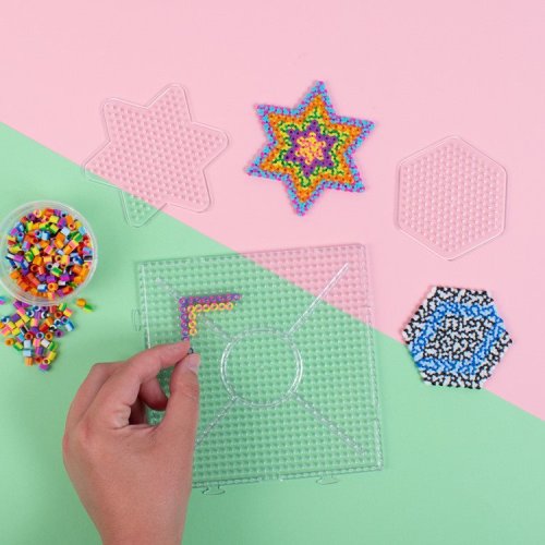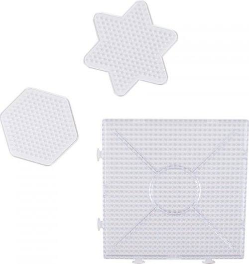 Plastové podložky jsou určeny pro skládání a tvoření obrázků ze zažehlovacích korálků. Podložky jsou průhledné, což usnadňuje vkládání kartiček se vzory pod ně. Podložky na korálky s ekoznačkou Nordic Swan s motivy hvězdy, šestiúhelníků a čtverce. Ideální pro rozšíření sortimentu o další možnosti a také tehdy, když si chce celá rodina společně vyrobit korálkové destičky. Balení obsahuje: 3ks podložek. Rozměry podložek: spojovatelný čtverec 15 x 15 cm, šestiúhelník a hvězda 8,5 x 8,5 cm.