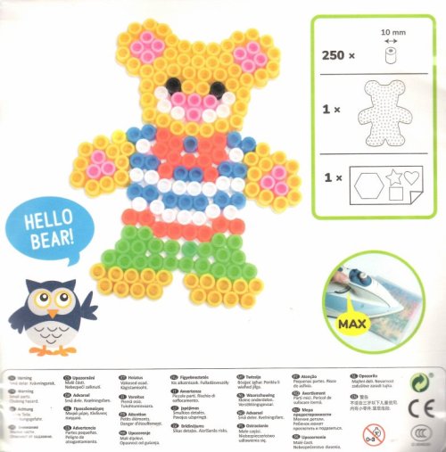 Upozornění: při práci s žehličkou doporučujeme dohled dospělé osoby. Postup: Předlohu vložte pod destičku a skládejte korálky dle barev. Po dokončení položte na podložku s korálky papír na pečení (je součástí) a obrázek přejíždějte žehličkou rozehřátou na maximální teplotu, dokud se korálky neroztaví zhruba do poloviny a nespojí. Po vychladnutí obrázek opatrně sundejte z podložky, kterou můžete použít pro další výtvor. Balení obsahuje: 250 XL zažehlovacích korálků (průměr 10mm), podložku, zažehlovací papír, předlohy