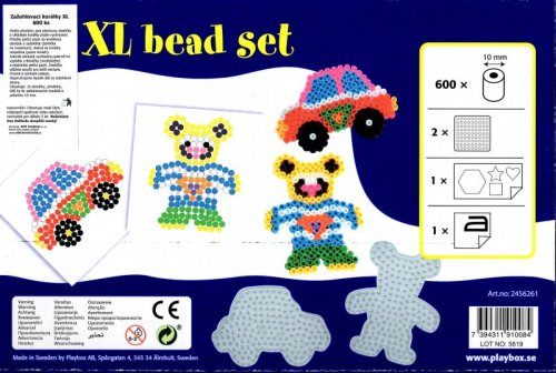 Upozornění: při práci s žehličkou doporučujeme dohled dospělé osoby. Postup: Předlohu vložte pod destičku a skládejte korálky dle barev. Po dokončení položte na podložku s korálky papír na pečení (je součástí) a obrázek přejíždějte žehličkou rozehřátou na maximální teplotu, dokud se korálky neroztaví zhruba do poloviny a nespojí. Po vychladnutí obrázek opatrně sundejte z podložky, kterou můžete použít pro další výtvor. Balení obsahuje: 600 zažehlovacích korálků XL (výška 10mm, Ø 9 mm, Ø otvoru 5 mm) , podložky, zažehlovací papír, předlohy.
