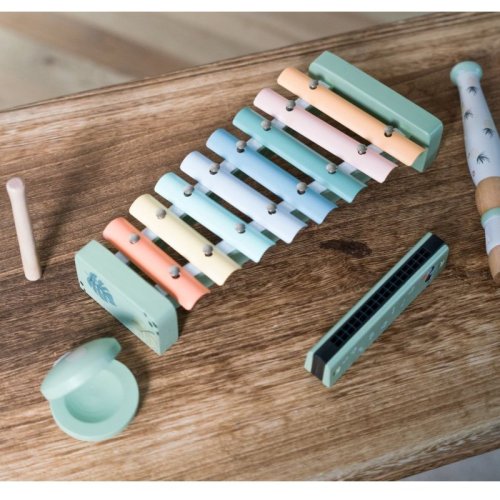 • multifunkční hudební sada ze dřeva v jemných barvách