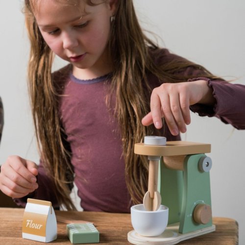 • dřevěný mixér pro dětskou hru na kuchaře nebo kavárníka