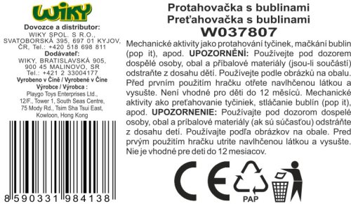 Playgo Protahovačka s bublinami. Velikost 16 cm. 6 protahovacích tyčinek, 6 práskacích bublin pop it, kousátko, cvakací kometa.