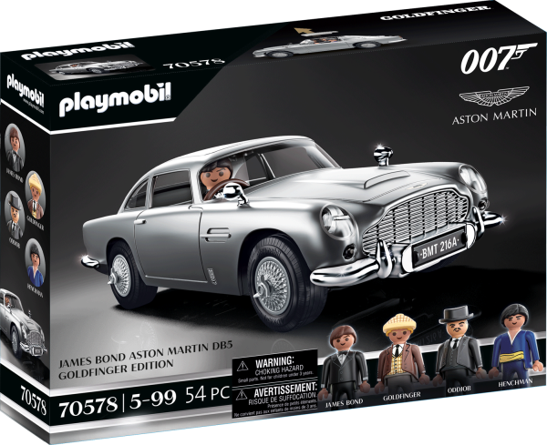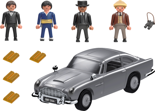 James Bond Aston Martin DB5 - Goldfinger Edition s autentickými vychytávkami včetně vystřelovacího sedadla spolujezdce a otočných poznávacích značek, které se poprvé objevily v Goldfingerovi (1964). Dále se objeví James Bond, Auric Goldfinger, Oddjob a další Goldfingerův stoupenec. Jmenuje se Bond, James Bond a je to nejslavnější světový tajný agent. Už téměř šedesát let baví dobrodružství 007 fanoušky po celém světě. Každý nový případ je akčním dobrodružstvím poháněným úžasnými kaskadérskými kousky, dechberoucími automobilovými honičkami a samozřejmě všemi nejnovějšími vychytávkami. Ve svém třetím vystoupení na plátně ve filmu Goldfinger (1964) James Bond vůbec poprvé řídí kultovní Aston Martin DB5.