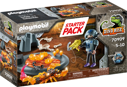 Tým Dino Rise má vždy plné ruce práce, aby překazil zlověstné plány společnosti Comet Corporation. Tentokrát se Ian musí vypořádat s obřím ohnivým štírem. Ian si musí dávat pozor i na štíří nebezpečný a bodavý ocas. Ian má však plán, jak štíra přelstít, aniž by byl pobodán. Pomocí háku se dostane ke křišťálům. Jaký chytrý manévr! Tato startovní sada je skvělým úvodem nebo doplňkem do vzrušujícího světa PLAYMOBIL Dino Rise.