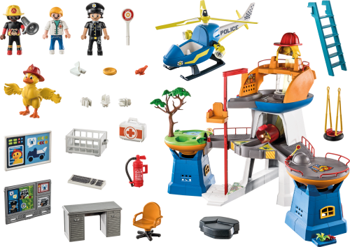 Velitelství DUCK ON CALL je operačním centrem pro Ducklase, Freddyho hasiče, Polly policistku a Mikeyho zdravotníka. Pokud v Playmoville dojde k mimořádné události, jsou tito čtyři hrdinové okamžitě na místě! Jakmile zazní poplach, Freddy rychle skočí na skluzavku s volným pádem. Polly nasedne do výsuvného výtahu a vyhoupne se do svého policejního vrtulníku, zatímco Mikey koordinuje rozkazy mise v tajném velitelském centru uvnitř malé věže. Po úspěšné misi si čtveřice odpočine na dětském hřišti s houpačkami a jezírkem.