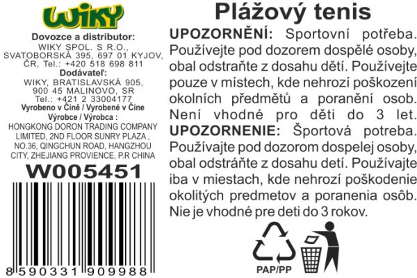 2 rakety míček Rozměry: 18,5 x 23 cm
