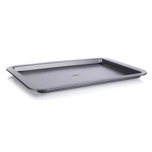 rozměry: 43 x 29 x 1,7 cm materiál: uhlíková ocel s nepřilnavým povrchem tloušťka: 0,5 mm vnější povrch ve stříbrnošedém provedení