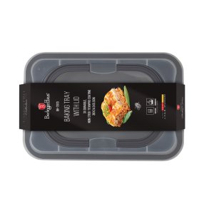 Užijte si pohodlí pečení a servírování kdekoliv díky tomuto praktickému plechu s titanovým nepřilnavým povlakem a přenosným plastovým víkem. Vyroben z pevné uhlíkové oceli s elegantním metalickým tmavě šedým designem, který bude ozdobou každé kuchyně i piknikového stolu. Díky své velikosti 36,5 × 24,5 × 5,5 cm se snadno vejde do trouby až do 220 °C a zároveň umožní bezpečný přenos vašich pokrmů. Nepřilnavý titanový povlak usnadní čištění a ekologické provedení bez PFOA, olova a kadmia zajistí zdravé vaření.