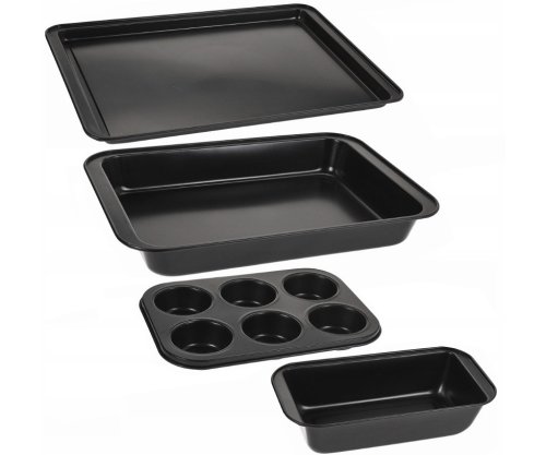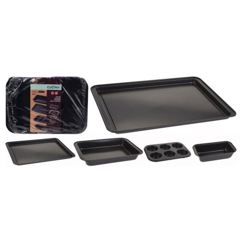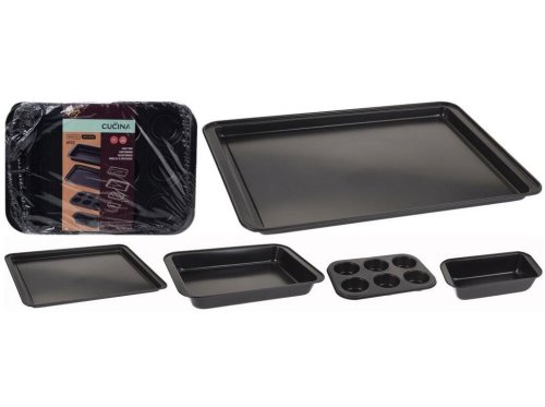 Univerzální sada plechů a forem z kovu s nepřilnavým povrchem, která vám usnadní přípravu sladkých i slaných dobrot. Díky různým velikostem a typům forem zvládnete upéct dort, muffiny i klasické pečivo. Nepřilnavý povlak zajistí snadné vyjmutí a jednoduchou údržbu.