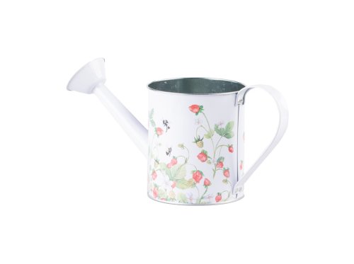 Plechová konvička s motivem červených jahod v bílé a červené barvě, ideální pro letní dekorace. Její rozměry jsou 300x115x145mm.