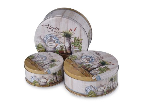 Plechová kulatá dóza Herbs, set 3 ks, 200x90/185x80/140x65mm