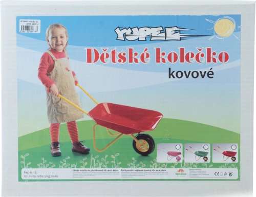 Dětské plechové kolečko by nemělo chybět žádnému zahradníkovi. Hračka je vhodná na pískoviště i do zahrady. Kolečko je vyrobeno z pevného plechového materiálu. Držadla jsou opatřena plastovými úchyty. Korba má zaoblené rohy.