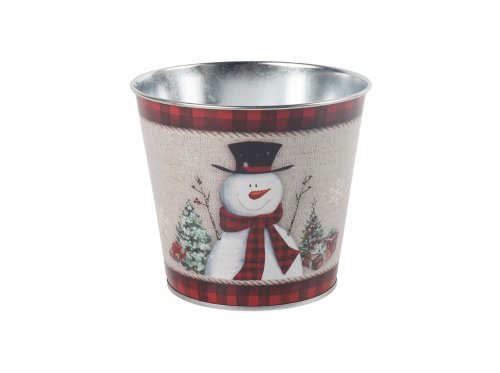 Plechový květináč 133×115 mm - sněhulák, červený