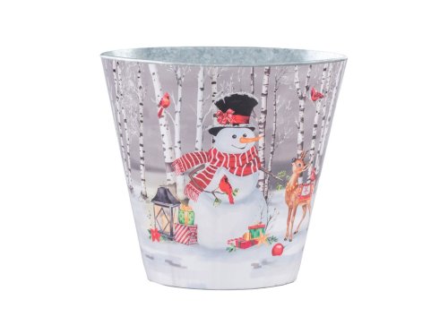 Plechový květináč 133×115 mm – sněhulák v lese s lesní zvěří