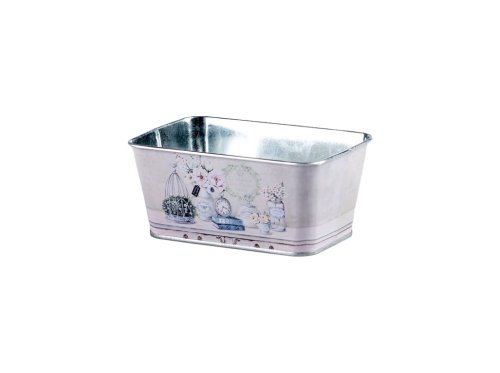 Hranatý plechový květináč s motivem Paříže, skvélý pro dekoraci v moderním nebo romantickém stylu. Jeho rozměry jsou 145x95x65mm.