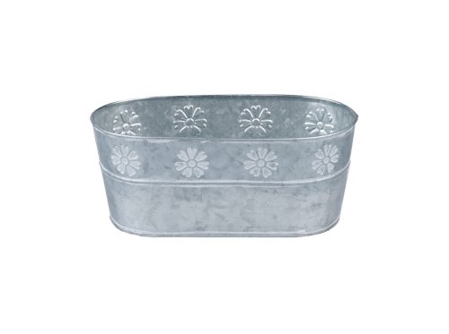 Oválný plechový květináč o rozměru 240 × 120 × 100 mm se stylovou bordurou s květinovým motivem je vhodný pro květiny, bylinky i aranžmá. Barevné provedení v šedé a bílé přináší do interiéru svěží a elegantní vzhled. Květináč je praktický, odolný a zároveň dekorativní, ideální pro aranžmá na parapet, stůl či terasu. Skvělá kombinace estetického a funkčního řešení pro každý domov.