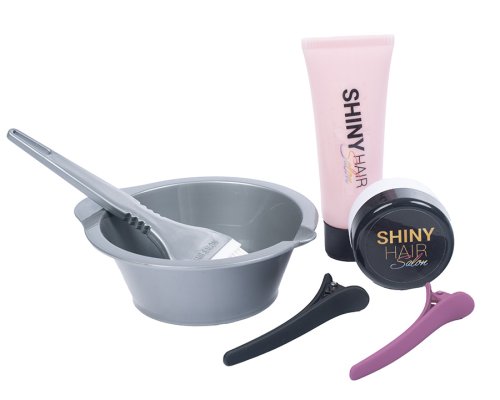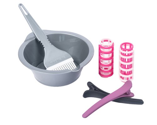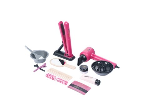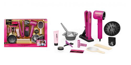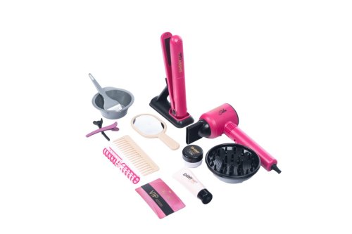 Velká kadeřnická sada obsahuje 16 ks. Fén je na baterie. Hřeben, nůžky, žehlička na vlasy, sadu na barvení vlasů..