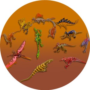 Modely dinosaurů: K sadě jsou přiloženy malé figurky dinosaurů, které odpovídají těm promítaným. Děti si tak mohou dinosaury osahat, hrát si s nimi a porovnávat je s obrázky.
