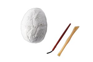 Uvnitř vajíčka je ukryta figurka dinosaura, kterou můžete vykutat pomocí přiložených nástrojů.