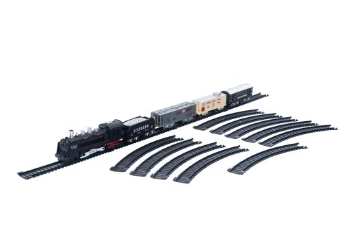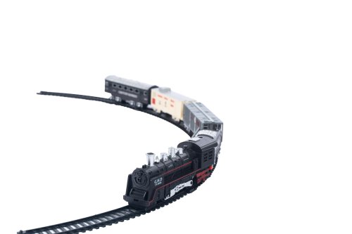 Plastová vlaková sada s lokomotivou na baterie. Postav si železniční okruh a vláček ti bude jezdit kolem dokola.