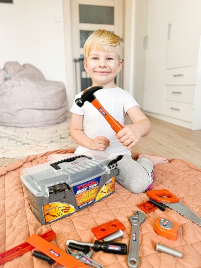 Díky tomu si děti mohou vyzkoušet skutečné kutilské činnosti a rozvíjet svou jemnou motoriku i představivost. Všechno nářadí má v kufříku své místo, takže se po hře snadno uklidí a nic se neztratí.