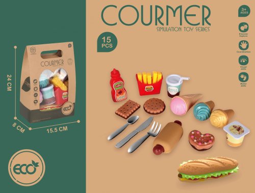Tento barevný a hravý set je ideální pro všechny malé kuchaře a milovníky jídla. S touto sadou se děti mohou ponořit do světa kulinářských kouzel, ať už připravují svačinu pro panenky, plyšáky, nebo pro sebe.
