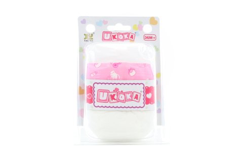 Balení pěti plenek pro panenky. Rozměr balení cca 16 x 12,5 x 9 cm. Velikost plenek cca 11 x 8 cm. Věk 3+