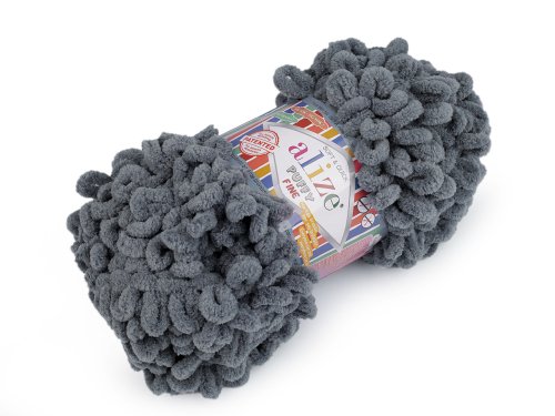 Příze Alize Puffy Fine je měkká, chlupatá žinylková příze s velkými očky. Na pletení nepotřebujete jehlice ani háček - proplétají se jednotlivá očka. Je vhodná na pletení dek, šálů apod. Přibližná spotřeba na deku o rozměrech 100 x 100 cm jsou 3 klubíčka. Přibližná spotřeba na šálu je 1 klubíčko.